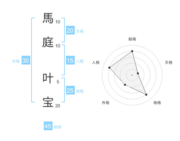 馬庭 叶宝さんの総格は45画の4点!