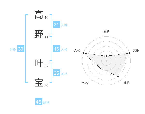 高野 叶宝さんを姓名の画数から五運を鑑定