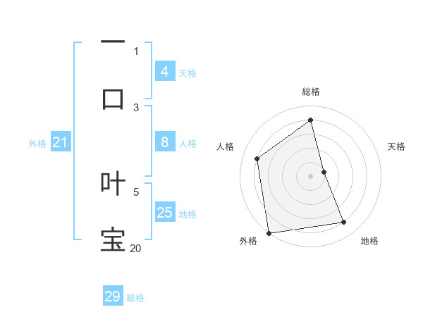 一口 叶宝さんを姓名の画数から五運を鑑定
