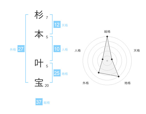 杉本 叶宝さんを姓名の画数から五運を鑑定