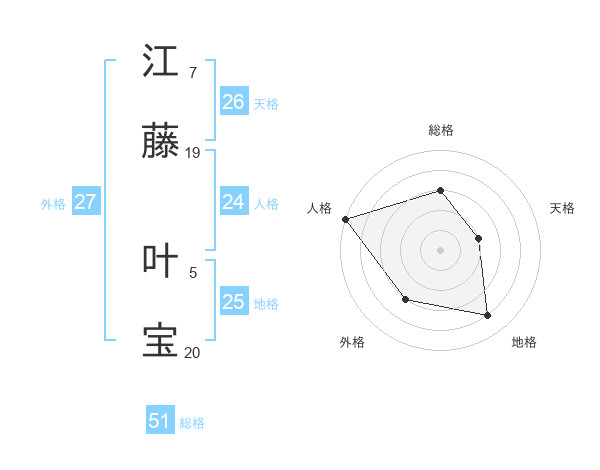 江藤 叶宝さんを姓名の画数から五運を鑑定