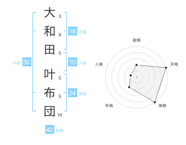 大和田 叶布団さんを姓名の画数から五運を鑑定