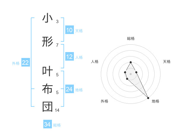 小形 叶布団さんを姓名の画数から五運を鑑定