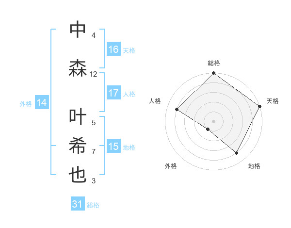 中森 叶希也さんを姓名の画数から五運を鑑定
