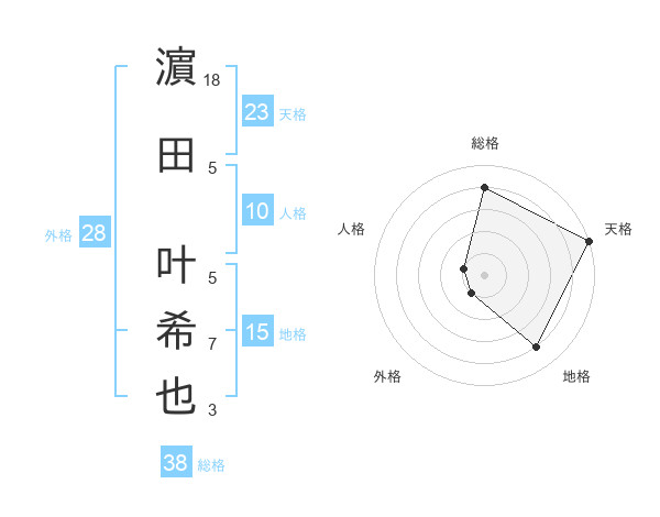 濵田 叶希也さんを姓名の画数から五運を鑑定