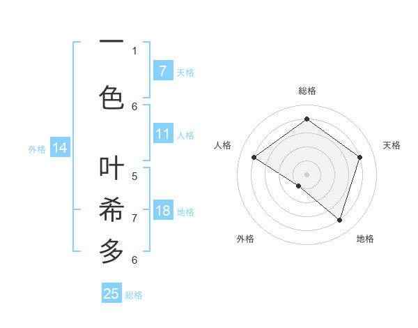 一色 叶希多さんを姓名の画数から五運を鑑定