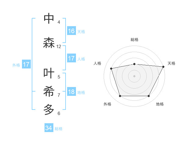 中森 叶希多さんを姓名の画数から五運を鑑定