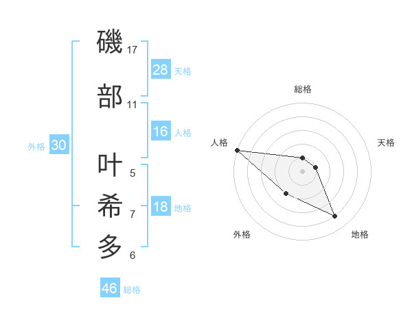 磯部 叶希多さんを姓名の画数から五運を鑑定