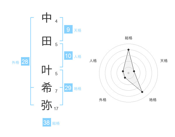 中田 叶希弥さんを姓名の画数から五運を鑑定