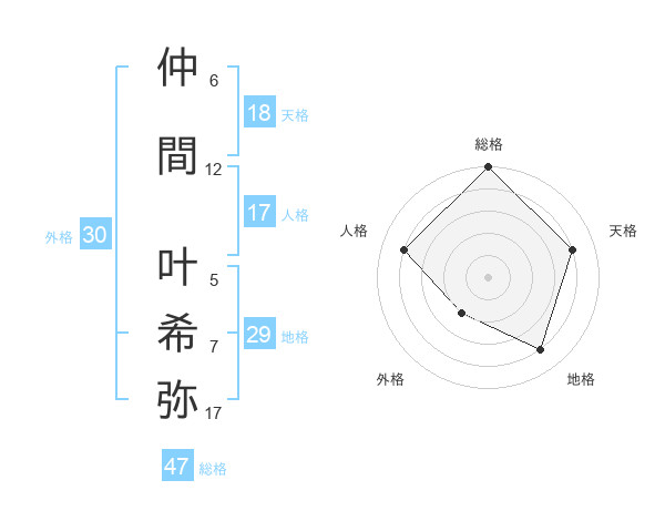 仲間 叶希弥さんの総格は47画の5点