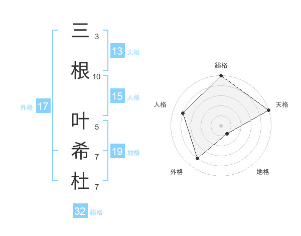 三根 叶希杜さんを姓名の画数から五運を鑑定