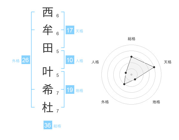 西牟田 叶希杜さんの天格は17画の4点!