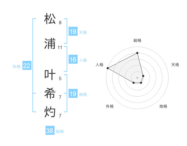 松浦 叶希灼さんの総格は38画の4点