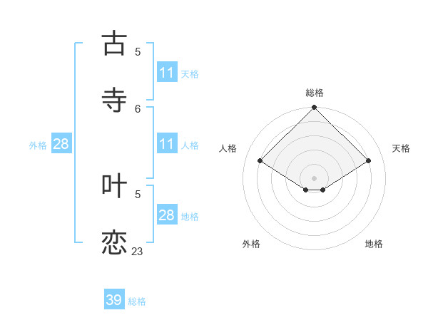 古寺 叶恋さんを姓名の画数から五運を鑑定