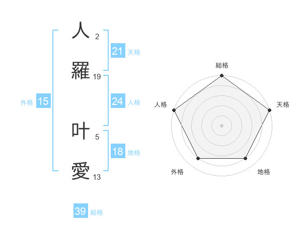 人羅 叶愛さんの総格は39画の5点!