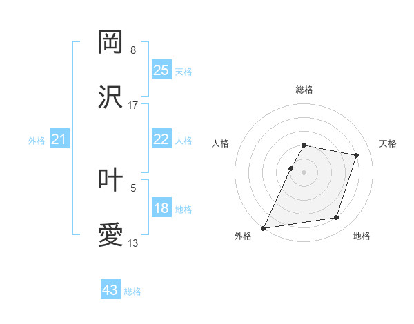 岡沢 叶愛さんを姓名の画数から五運を鑑定