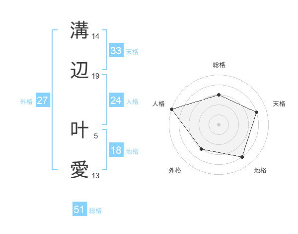 溝辺 叶愛さんの総格は51画の3点!