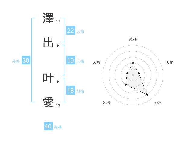 澤出 叶愛さんの総格は40画の2点!