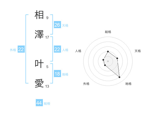 相澤 叶愛さんを姓名の画数から五運を鑑定