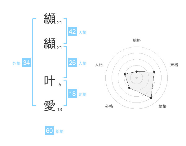 纐纈 叶愛さんを姓名の画数から五運を鑑定