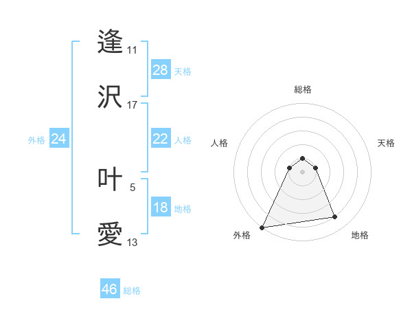 逢沢 叶愛さんの外格は24画の5点!