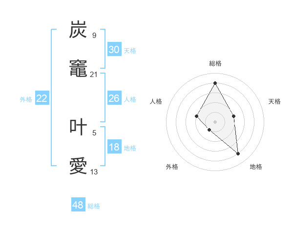 炭竈 叶愛さんの総格は48画の4点!