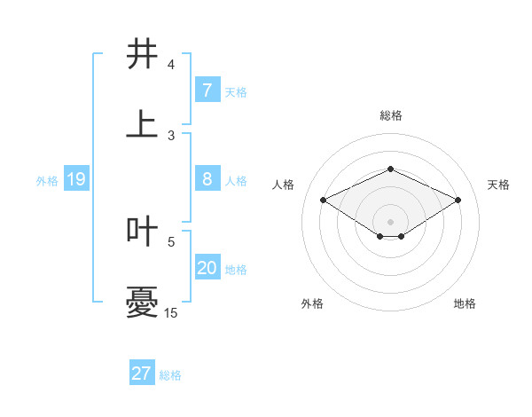 井上 叶憂さんの総格は27画の3点!