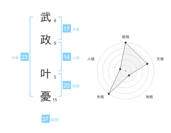 武政 叶憂さんを姓名の画数から五運を鑑定