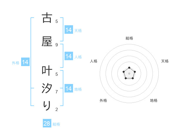 古屋 叶汐りさんの総格は28画の1点!