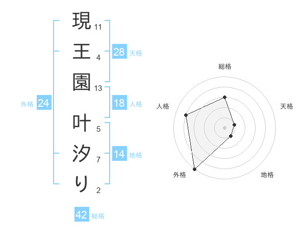 現王園 叶汐りさんを姓名の画数から五運を鑑定