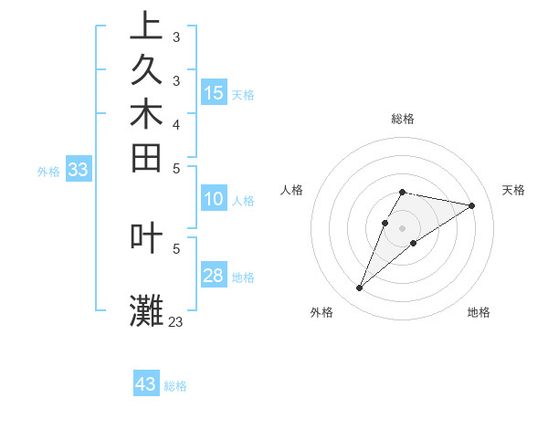 上久木田 叶灘さんの天格は15画の4点!