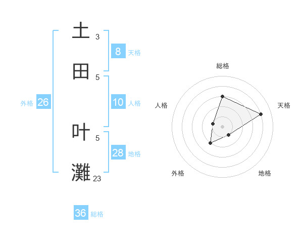 土田 叶灘さんを姓名の画数から五運を鑑定