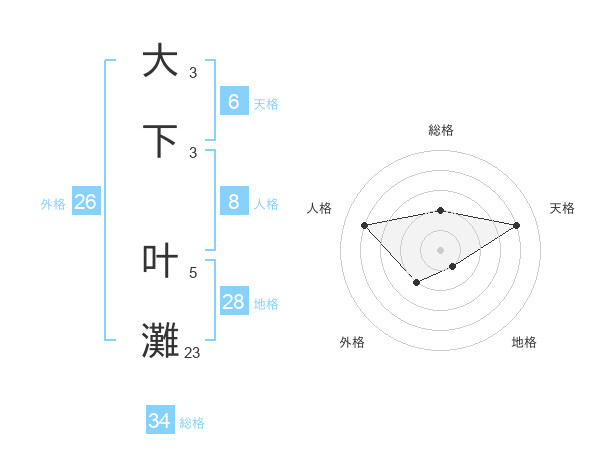 大下 叶灘さんを姓名の画数から五運を鑑定
