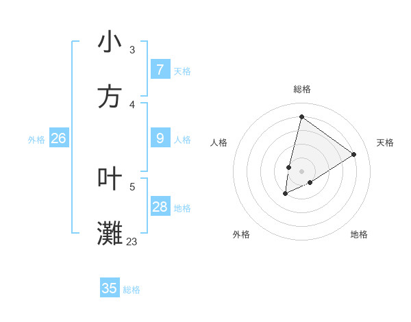 小方 叶灘さんを姓名の画数から五運を鑑定