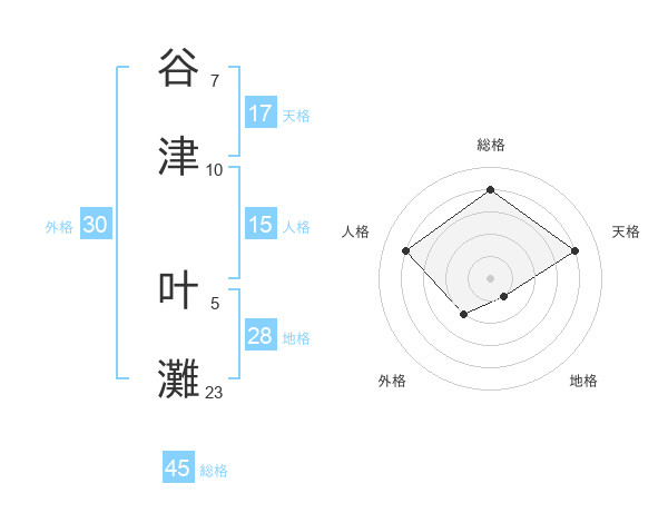谷津 叶灘さんを姓名の画数から五運を鑑定