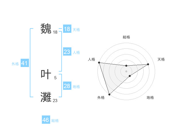 魏 叶灘さんを姓名の画数から五運を鑑定