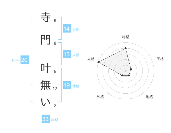 寺門 叶無いさんを姓名の画数から五運を鑑定