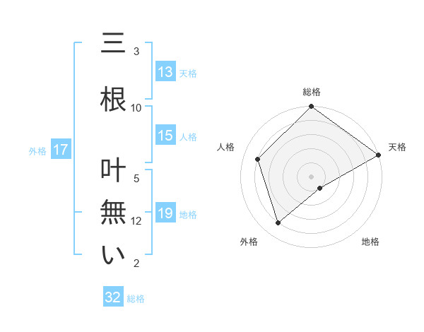 三根 叶無いさんの天格は13画の5点!