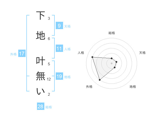 下地 叶無いさんを姓名の画数から五運を鑑定