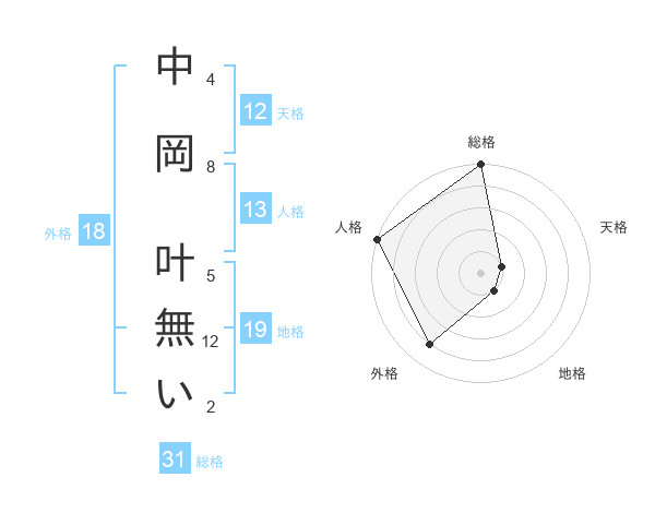 中岡 叶無いさんを姓名の画数から五運を鑑定
