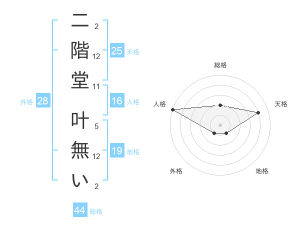 二階堂 叶無いさんの天格は25画の4点!