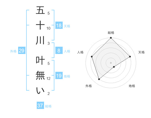 五十川 叶無いさんを姓名の画数から五運を鑑定