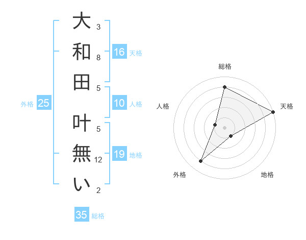 大和田 叶無いさんを姓名の画数から五運を鑑定
