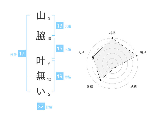 山脇 叶無いさんを姓名の画数から五運を鑑定