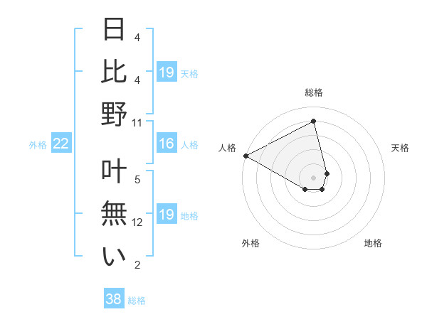 日比野 叶無いさんを姓名の画数から五運を鑑定