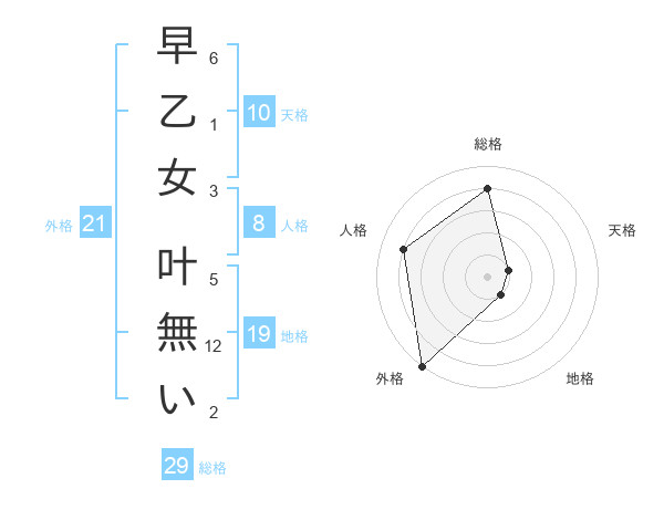 早乙女 叶無いさんを姓名の画数から五運を鑑定