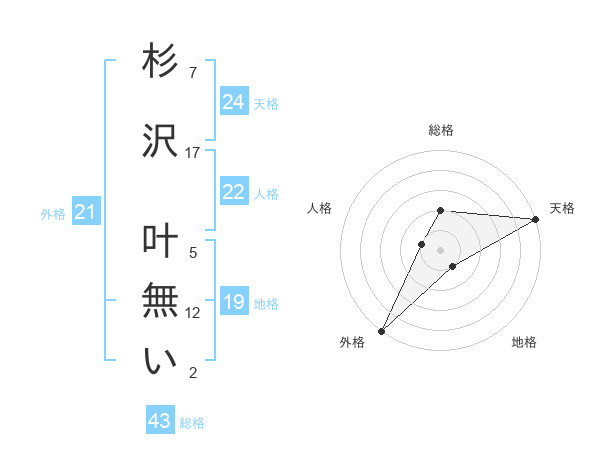 杉沢 叶無いさんを姓名の画数から五運を鑑定