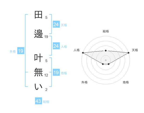 田邊 叶無いさんを姓名の画数から五運を鑑定