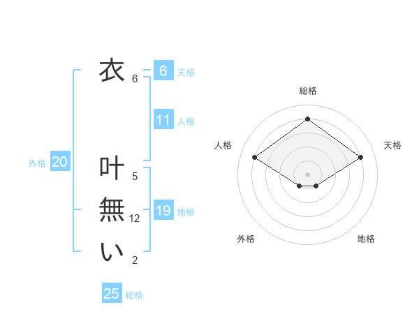 衣 叶無いさんを姓名の画数から五運を鑑定