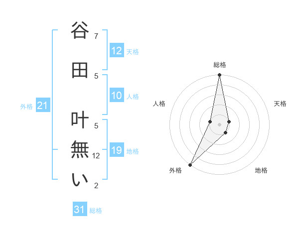 谷田 叶無いさんを姓名の画数から五運を鑑定